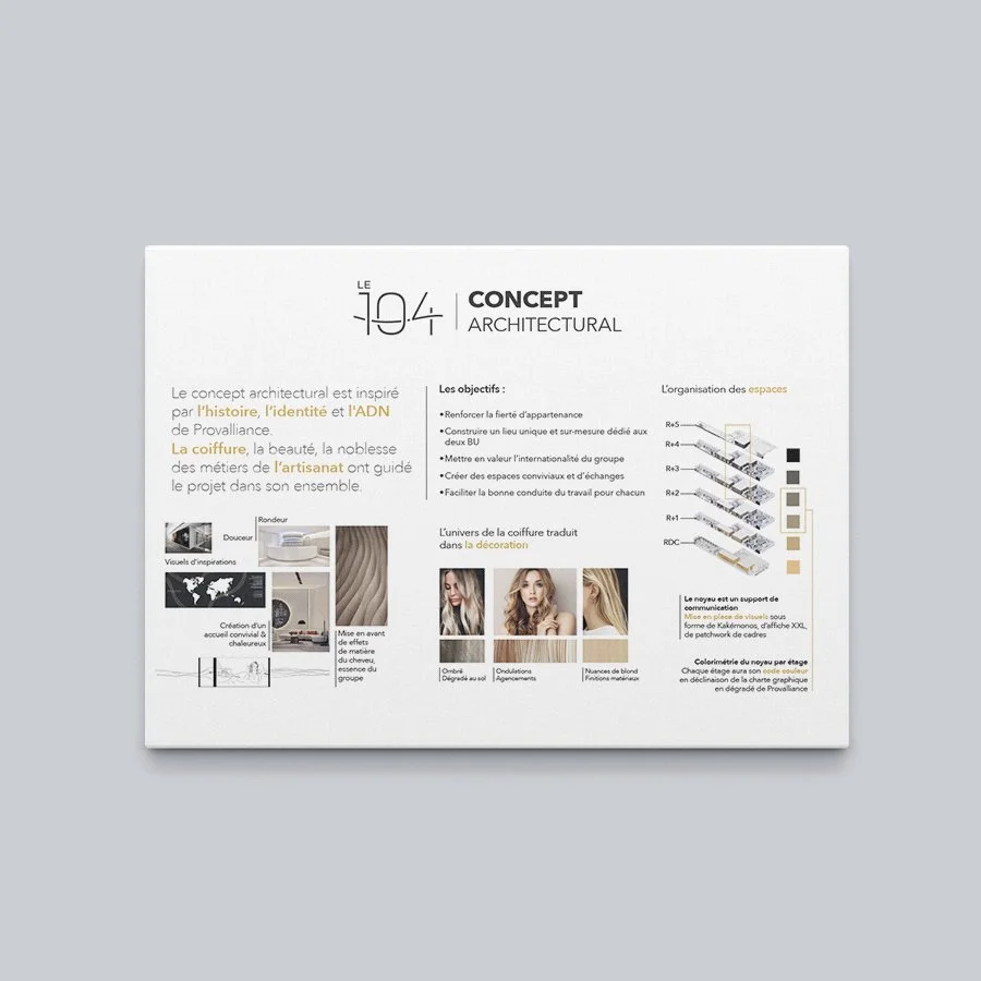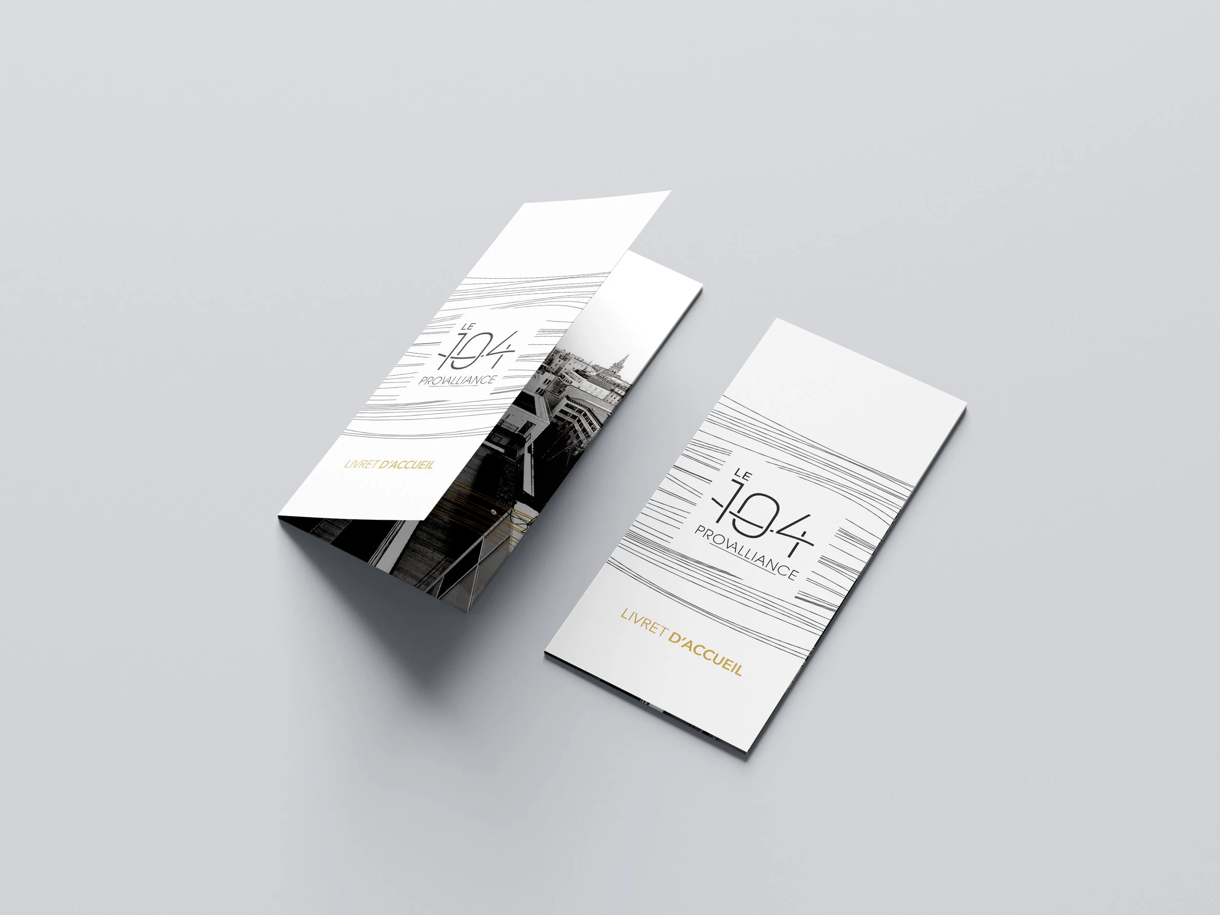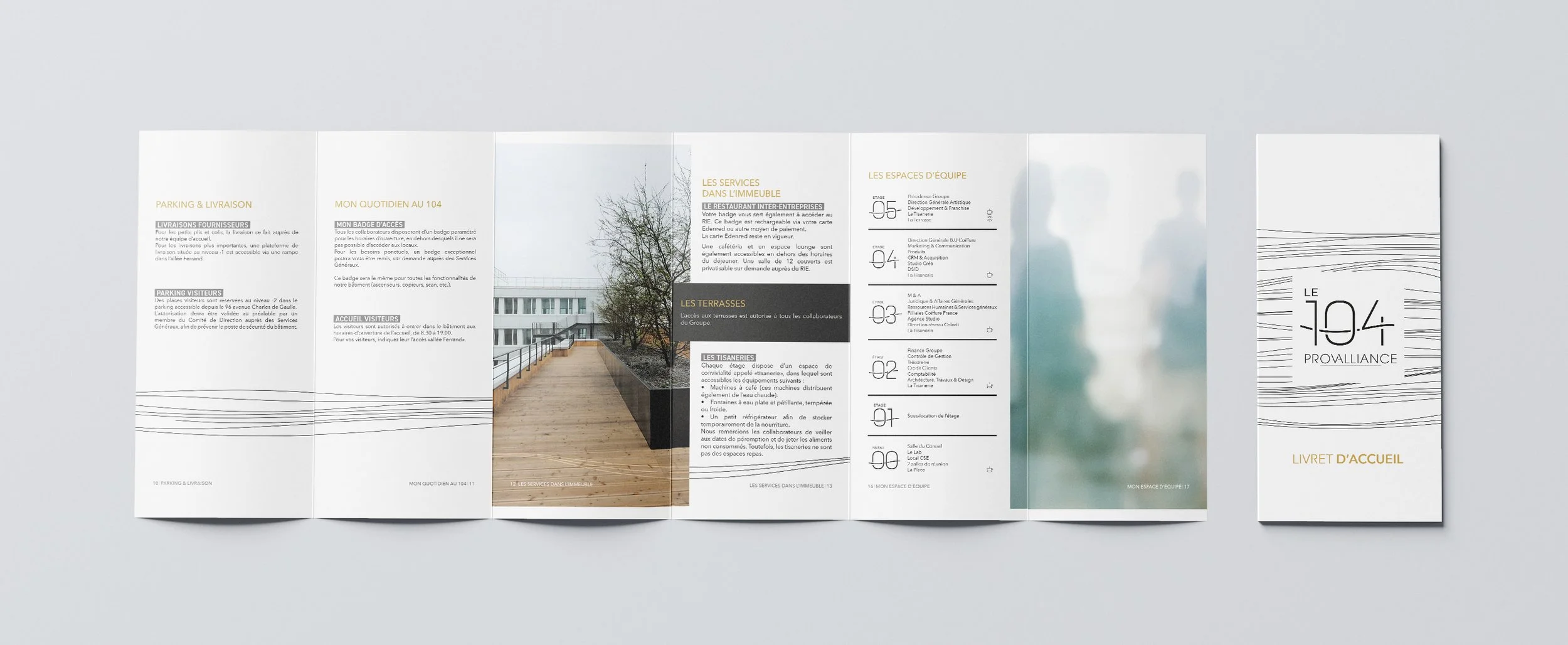 Création du logo 104 et de l’habillage des différents étages du siège.