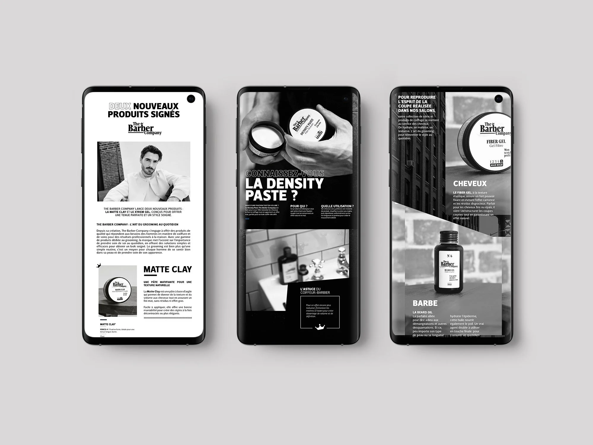 CAMPAGNE THE BARBER COMPANY Campagne print et digitale de The Barber Company.Direction artistiqueIdentité de marqueÉditionDigital