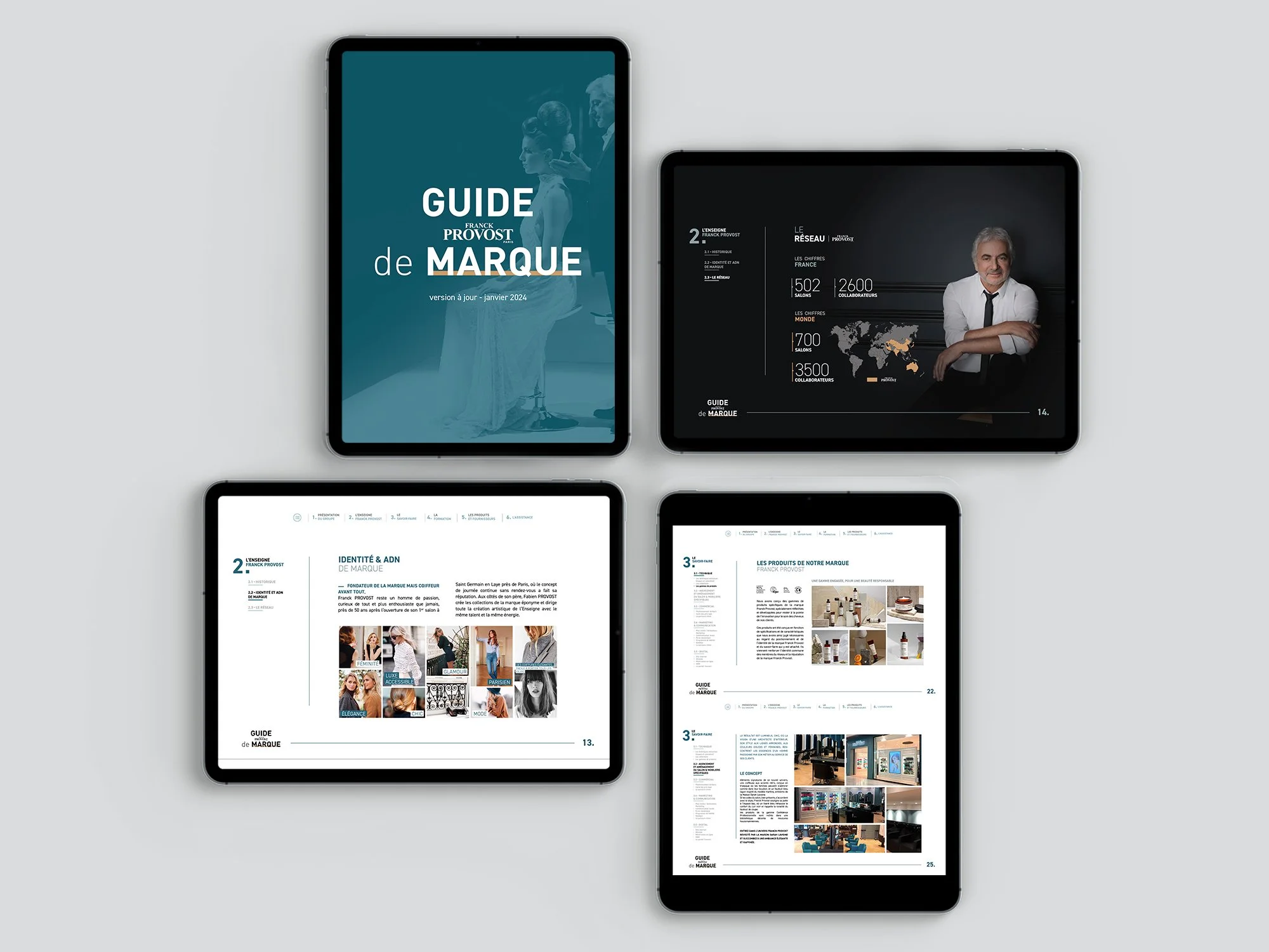 FRANCK PROVOSTCampagne print de la collection PE2025 Franck Provost.Guide marque interactif destiné aux franchisés de l’enseigne.Direction artistiqueIdentité de marqueÉditionDigital